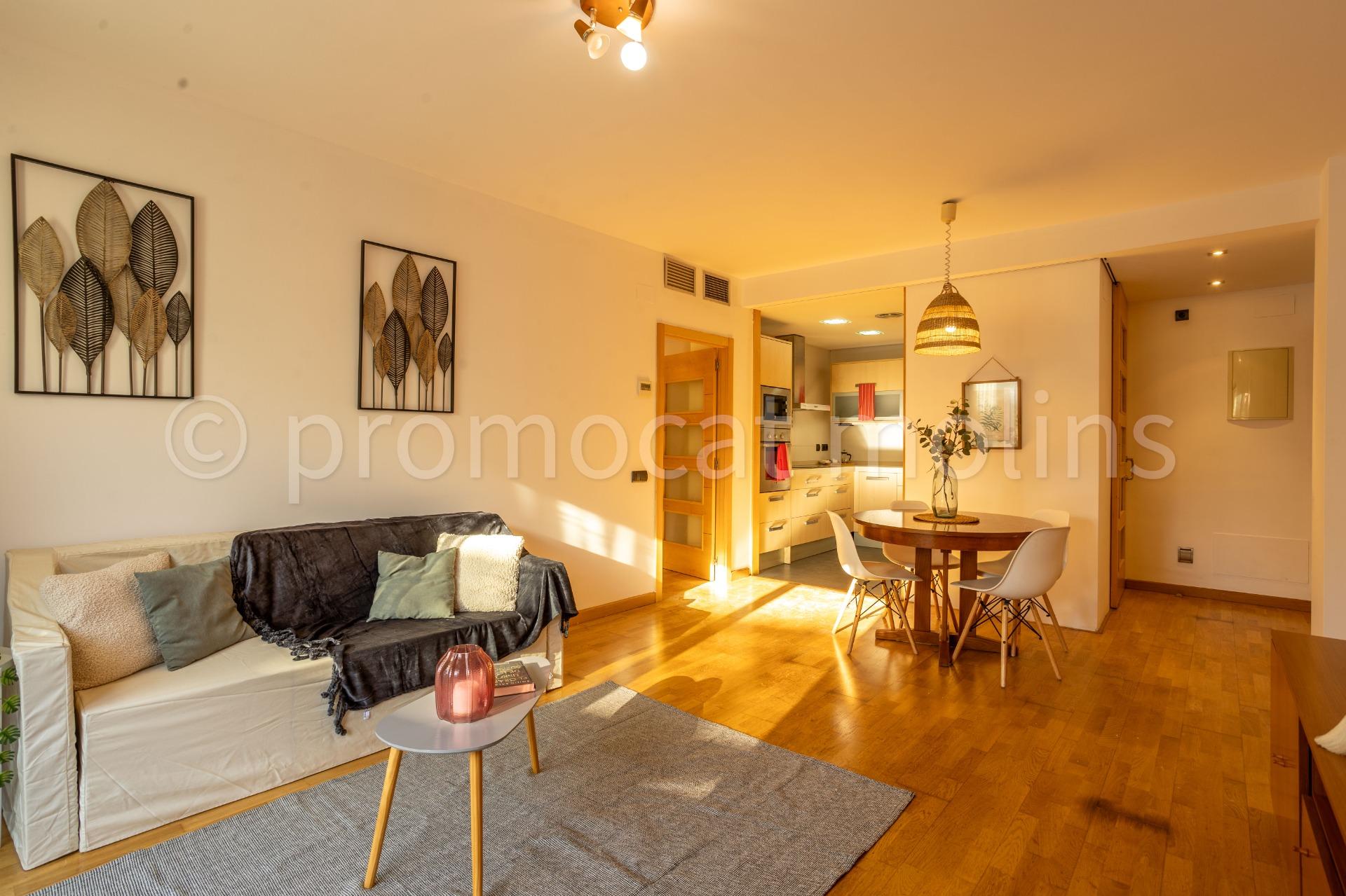 La vivienda cuenta con un amplio salón-comedor, muy luminoso, con acceso directo a la increíble terraza, ideal para crear diferentes ambientes como comedor exterior, zona chill-out o espacio de juegos. La cocina semiabierta aporta amplitud y funcionalidad, integrándose de manera elegante con la zona de día.
