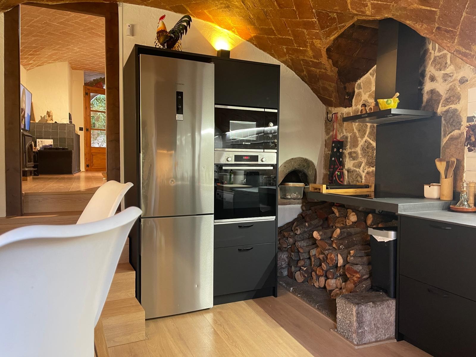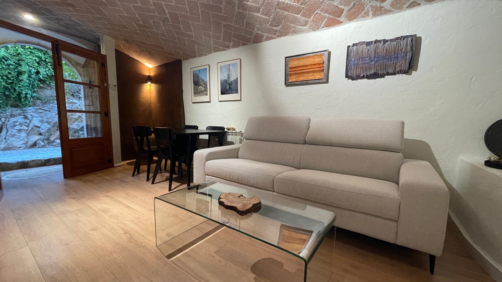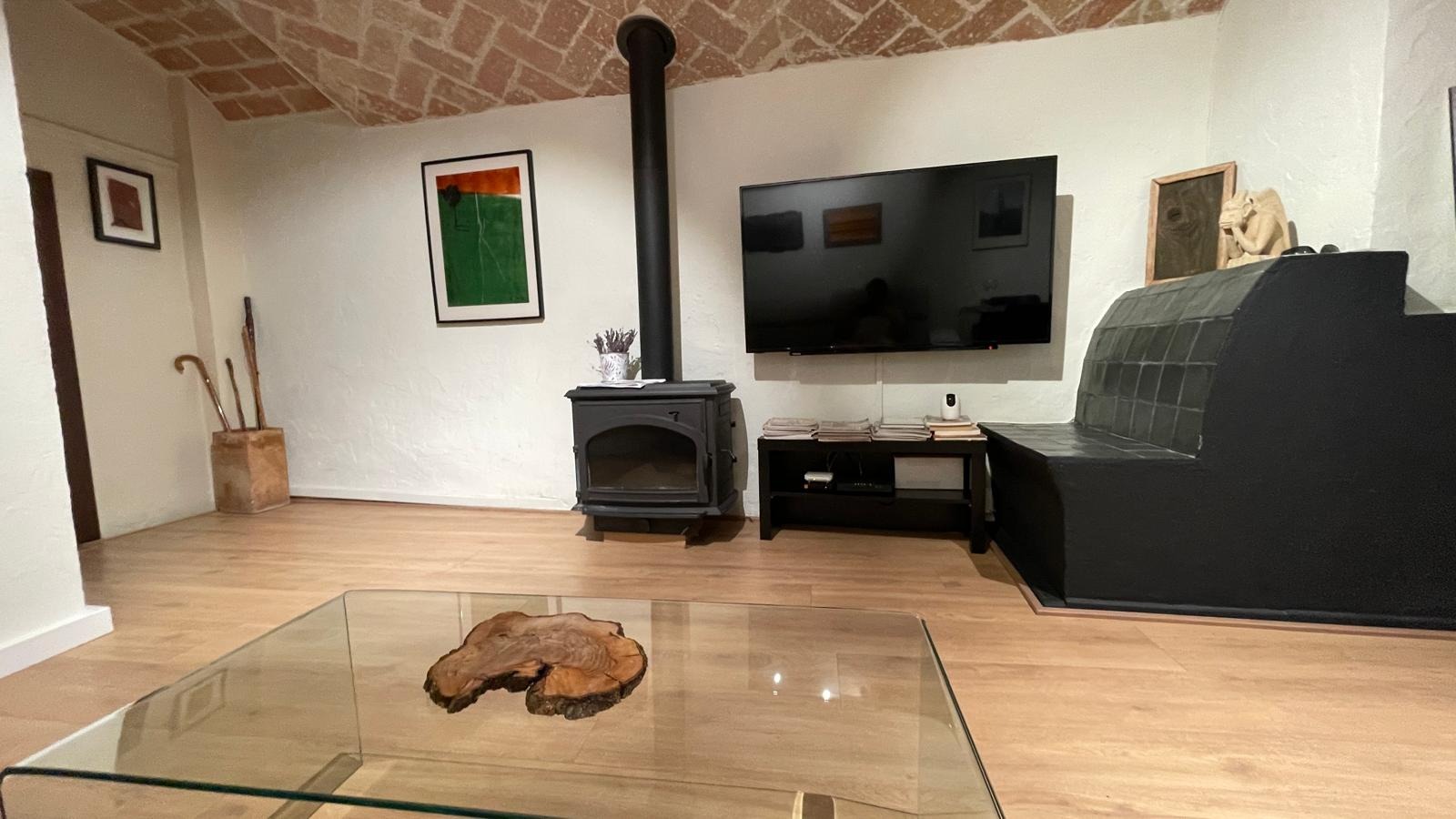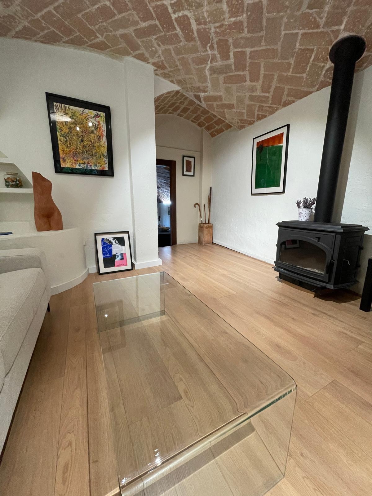 A la planta principal, el gran saló amb xemeneia convida al relax i la convivència, amb accés directe a una terrassa assolellada perfecta per gaudir de les vistes i l'aire lliure. La cuina pràctica i amb estil conserva detalls rústics originals que s'integren amb tocs moderns.