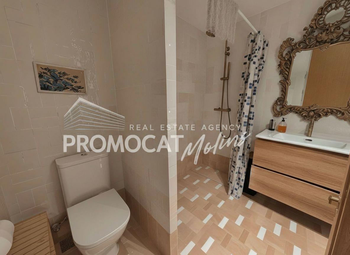L´habitatge disposa d´un bany complet amb dutxa, al costat d´una pràctica zona de rentat i rebost perfectament integrat. El saló, ampli i molt lluminós, es converteix en un espai acollidor gràcies a la sortida directa a una terrassa d'aproximadament 30 m², perfecta per gaudir de l'exterior durant tot l'any.